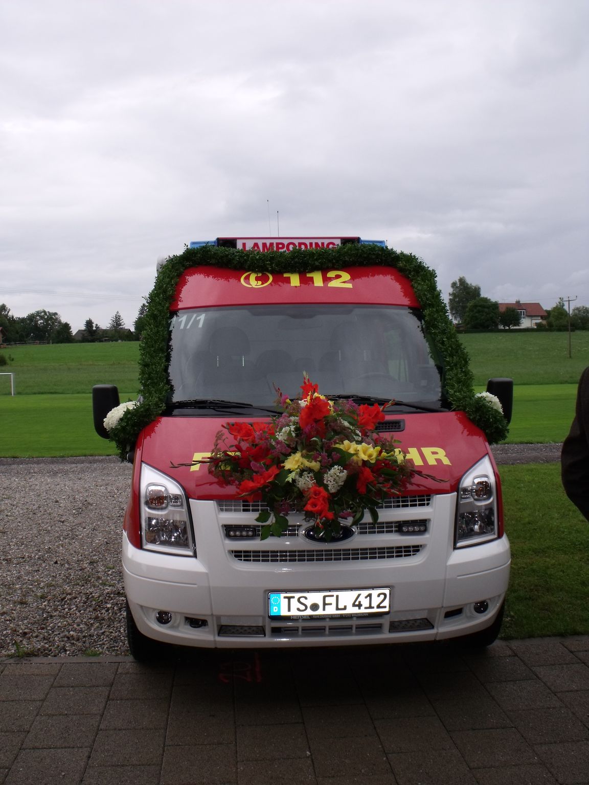 Das neue Fahrzeug der Lampodinger Wehr wurde um ca. 19:10 Uhr am Feuerwehrhaus empfangen.