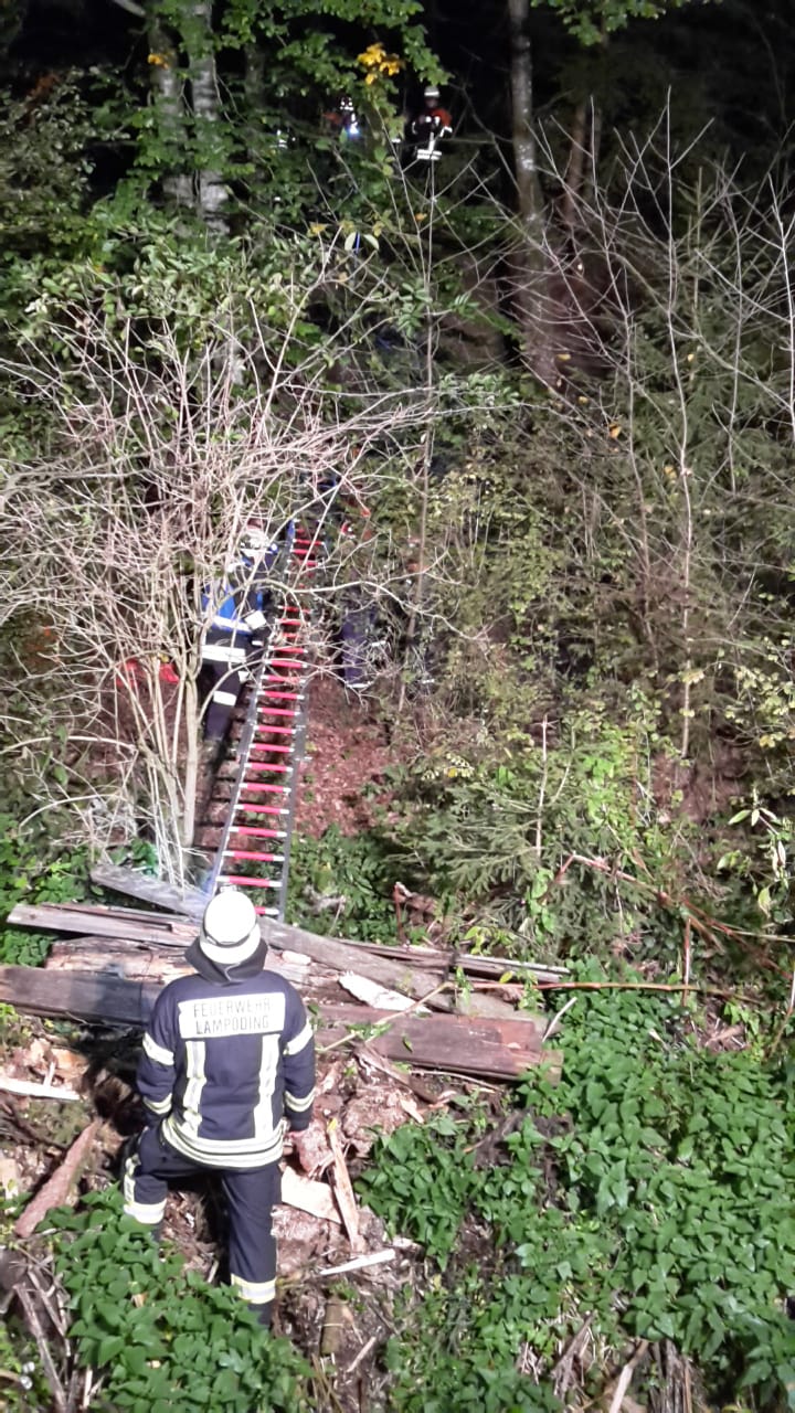 Nach ein paar Stunden Schlaf wurden unsere Jungen unsanft durch einen Alarm geweckt. Eine Person musste nach einem Forstunfall aus unwegsamen Gelände geborgen werden.