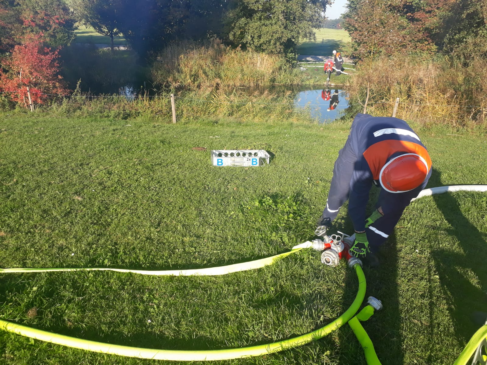 Neben einer theoretischen Prüfung wurde in der Praxis Knoten und Stiche sowie das Kuppeln einer Saugleitung und das aufstellen einer vierteiligen Steckleiter geprüft.