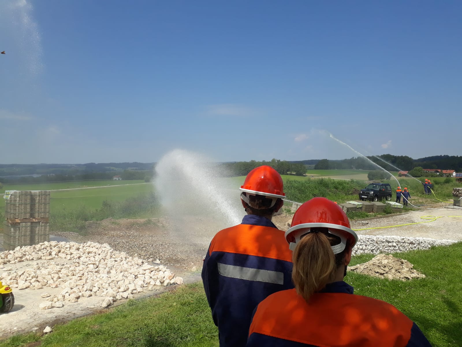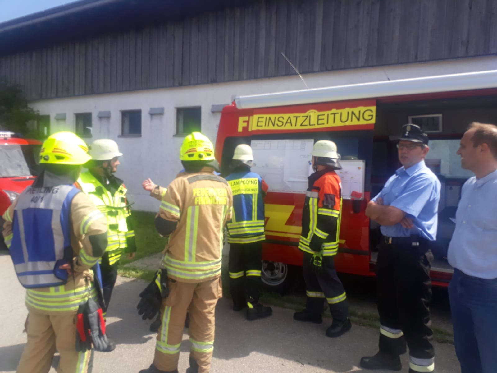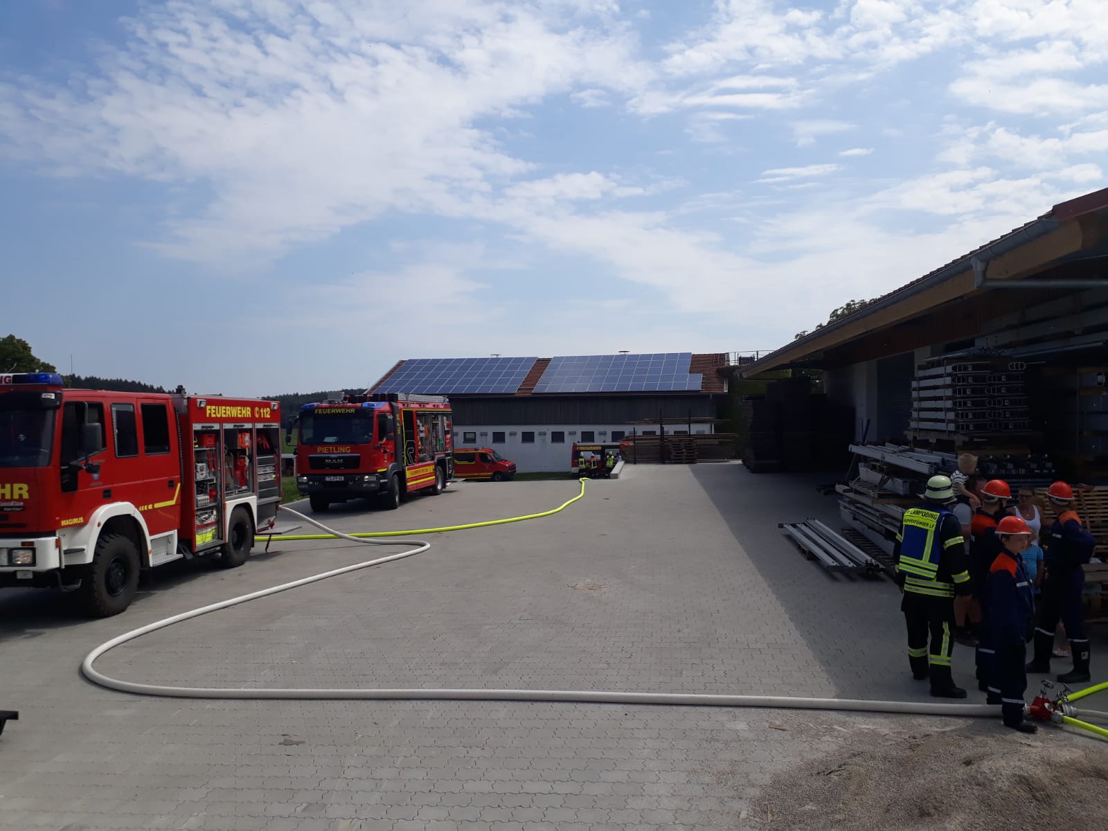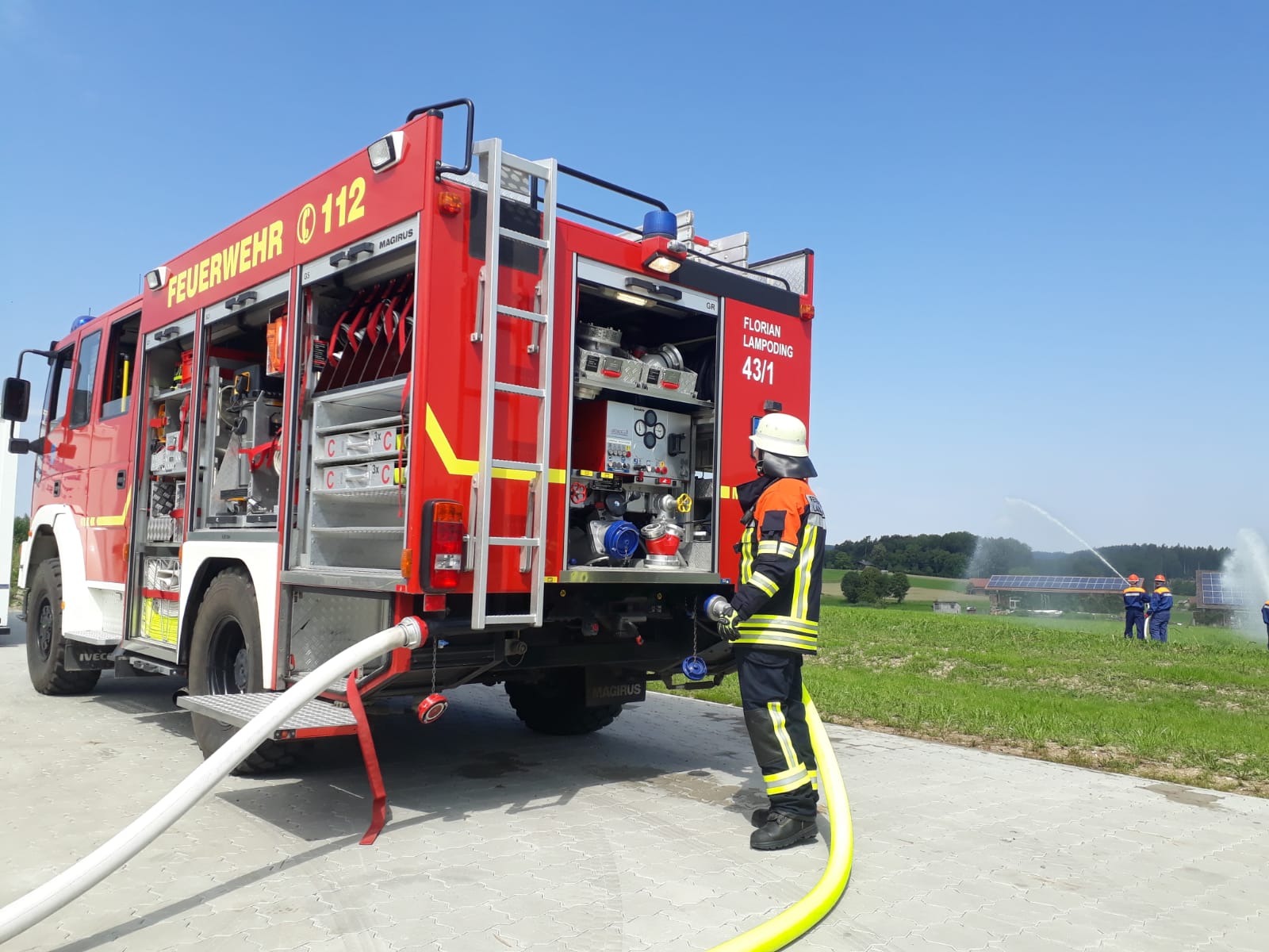 Am Samstag den 14. Juli wurden die Jugendfeuerwehren aus Lampoding, Kirchanschöring, Petting, Fridolfing und Pietling zu einem Brand einer Lagerhalle in Lampoding alarmiert. Die schnell angerückten Nachwuchskräfte bauten einen Löschaufbau mit mehreren Strahlrohren zur Brandbekämpfung auf. Ebenso wurden Nachbargebäude abgeschirmt, um ein Übergreifen der Flammen zu verhindern. Das dafür notwendige Löschwasser wurde aus zwei Oberflurhydranten und aus einer Löschwasserzisterne mit Hilfe einer Saugleitung und Tragkraftspritzenpumpe entnommen. Dazu waren zwei lange Schlauchleitungen in Richtung Brandobjekt notwendig. Nach ausreichenden Löscharbeiten konnte der Einsatzleitung "Feuer aus" gemeldet werden. Die anwesenden Übungsbeobachter aus der Inspektion Martina Steinmaßl, Fachberaterin Jugend Land 3, und KBM Hans Heinrich konnten den Jugendlichen eine gute Leistung und eine hervorragende Zusammenarbeit bescheinigen. Ein Dank gilt auch Bürgermeister Hans Jörg Birner für die wohlverdiente Brotzeit und der Versorgung mit Getränken. An der Übung waren 90 Jugendliche und Betreuer aus 5 Feuerwehren beteiligt.
